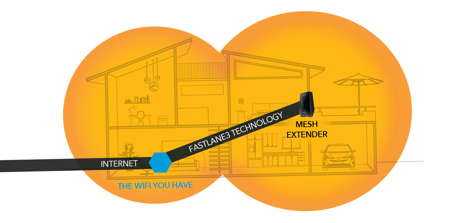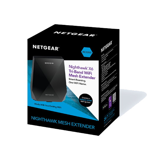 -Nighthawk X6 Mesh Extender creates a seamless network throughout your home by using the same WiFi network name (SSID) as your router.