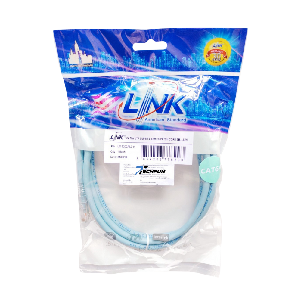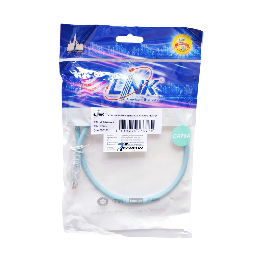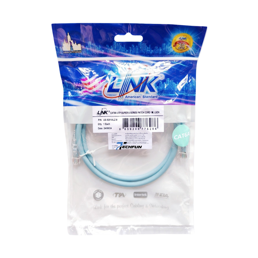 Link Unshield CAT 6A UTP Super-S Series RJ45 (สายแลน) Patch cord 26 AWG Super XG Cable Aqua Blue รับประกัน 30ปี