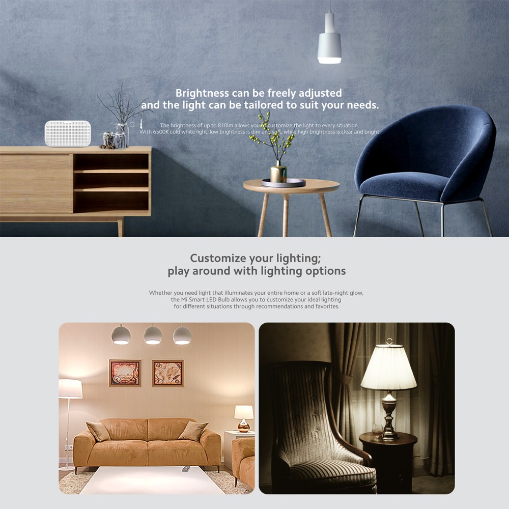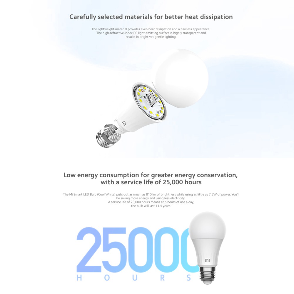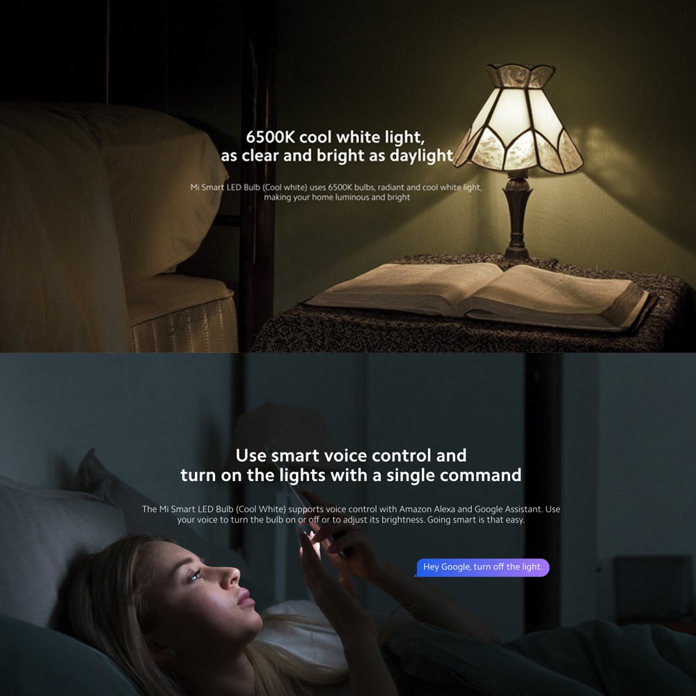 สี Cool white 6500K แสงสีขาวนวลชัดเจนและสว่างเหมือนเวลากลางวัน สามารถเชื่อมต่อผ่าน Wi-Fi ไปยังระบบสมาร์ทโฮมได้โดยไม่ต้องมีเกตเวย์ หลังจากติดตั้งหลอดไฟแล้วเพียงแค่เชื่อมต่อกับแอพ Mi Home และเริ่มเพลิดเพลินกับระบบไฟอัจฉริยะ